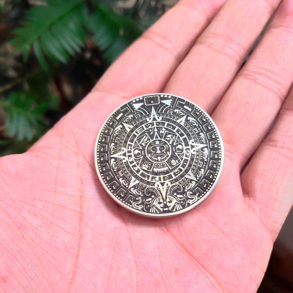 Aztec Theme Haptic Coin Copper Plate fidget edc