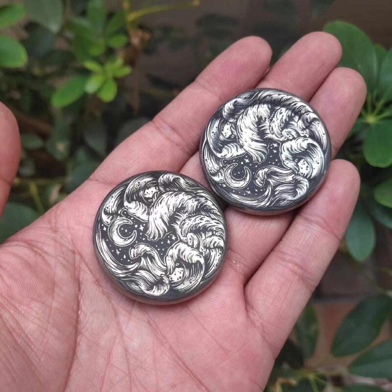 Sea waves and stars haptic coin selected stainless steel material, engraved with exquisite waves and stars, feel rebound delicate, strong sense of paragraph.
